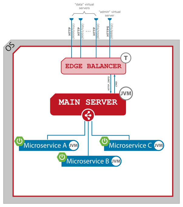 - edge1 (port: 8001) - additional 'data' type virtual servers, where services from servlet microservices might be provided, if it has been defined in their configuration files accordingly. See next chapter to get to know more.