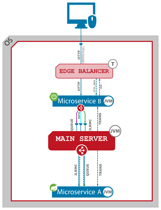 - TRANS - binary interface (TRANSMISSION) for management purposes. The Main Server executes administration and monitoring commands on this interface to manage the microservice.