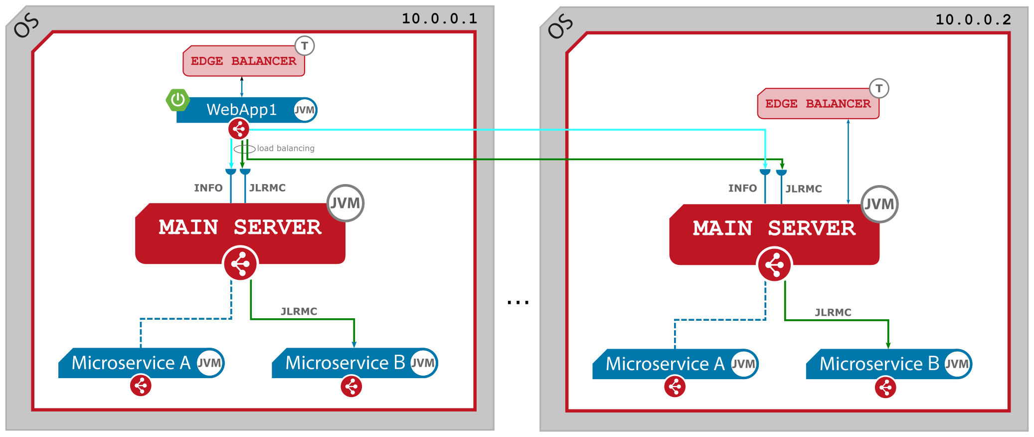 - OUTER_CLIENT for communication between external clients (Tomcat, Jetty, other Java application servers) and JLupin microservices.