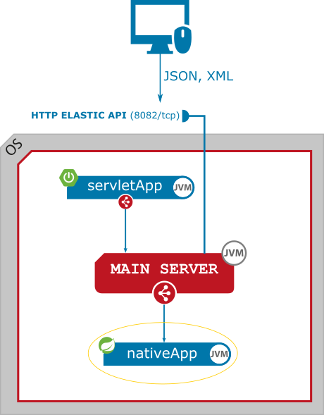 HTTP Elastic API is an automated text communication entry point. It is used to call remotely enabled services. By default it is exposed by Main Server on port 8082.