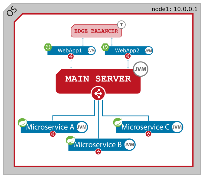 Of course, in clustered environment you can run multiple instances of microservices (along with single-instance microservice) and perform load balancing and failover between them. The example of such configuration is presented on the following picture.