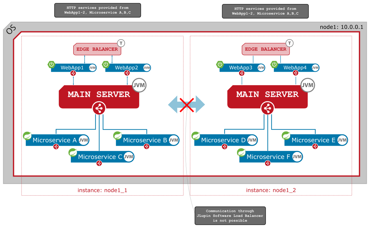 The plan assumes that many instances of JLupin Platform works on a node (operating system). Such configuration is suitable for: