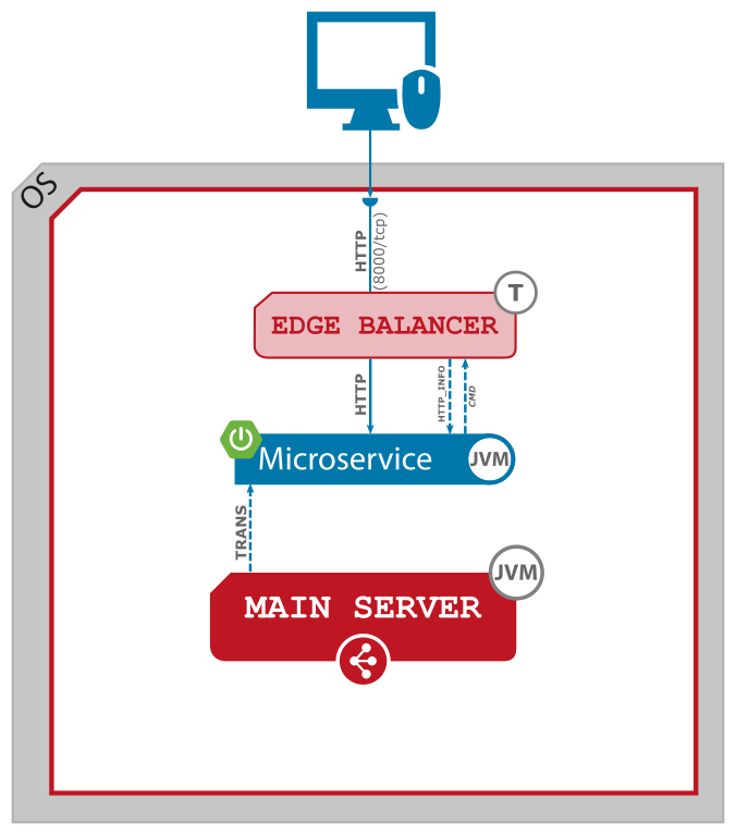 - TRANS - binary interface (TRANSMISSION) for management purposes. The Main Server executes administration and monitoring commands on this interface to manage the microservice.